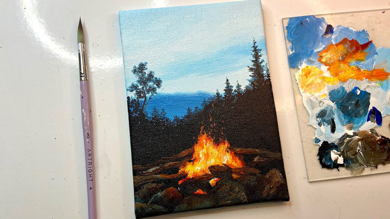 Bonfire painting/ night camping painting/acrylic painting tutorial/acrylic painting for beginners
